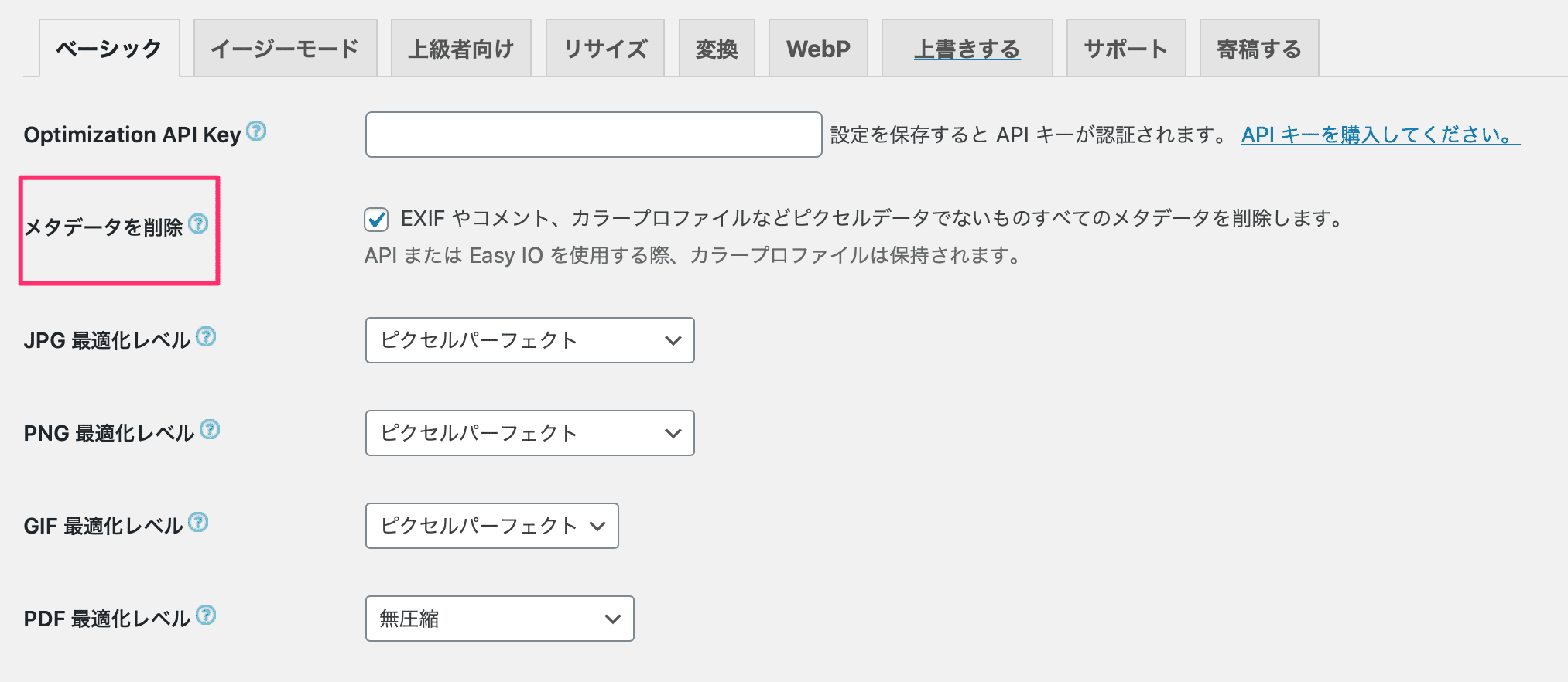 画像サイズ縮小による高速化プラグインとして紹介されることが多いですが、メタデータ削除がメインの機能だと個人的には思っています。