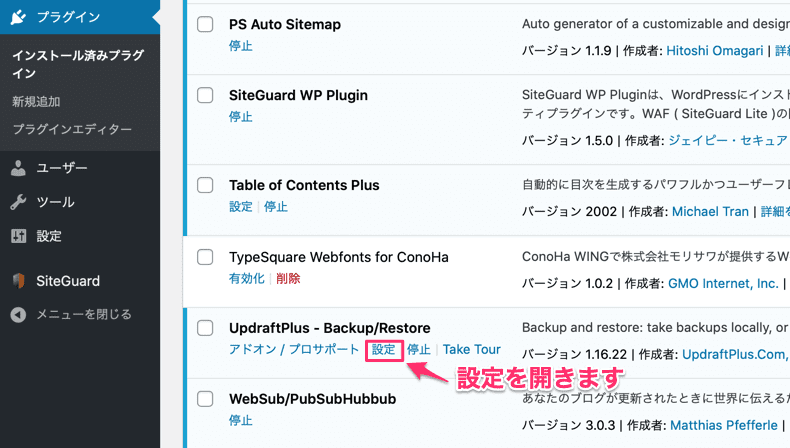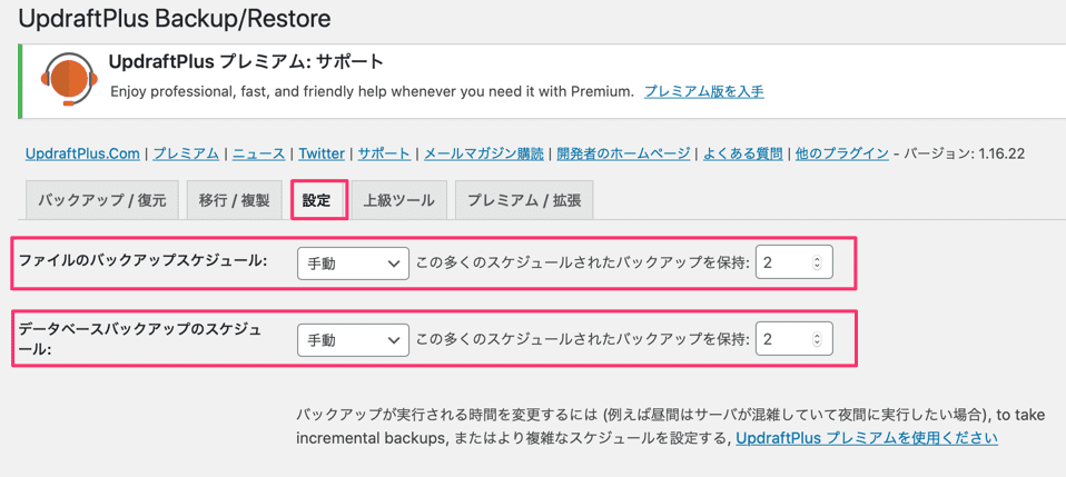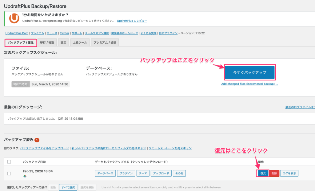 UpdraftPlus - Backup/Restoreなら簡単にバックアップが取れますよ。
